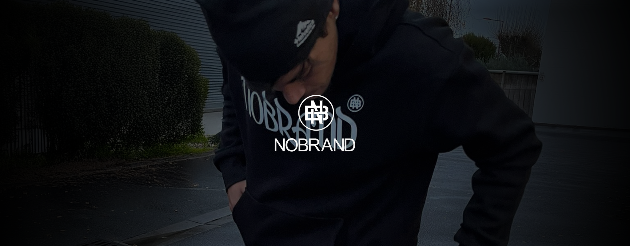 Ce look présente un ensemble streetwear entièrement noir, composé d’un hoodie et d’un jogging assortis, tous deux ornés du logo distinctif Nobrand. Le style dégage une allure moderne et décontractée, idéale pour le quotidien